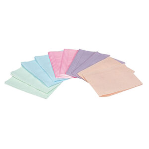 產品特點: • 水準壓印紋路和獨特的防水設計提供最大的防護 • 背面塑膠襯墊,提高抗撕裂的強度 • 每箱5種顏色 • 13” x 18” (33 x 45.5 cm) 2層紙+1層塑膠膜 • 適用於: 牙醫診所、美容院 (放於枕頭)或辦公室 (午餐飯盒桌面上)